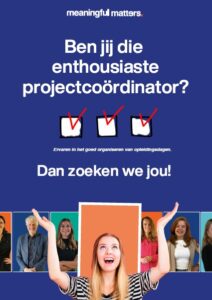 Wij geloven dat iedereen het verschil kan maken. Ook jij. In het klein en in het groot. Voor jezelf, voor de mensen om je heen, voor de organisatie en voor de maatschappij. Daar staan wij voor! Om ons team van ruim 20 mensen uit te breiden, zoeken wij regelmatig een nieuwe, enthousiaste collega’s.